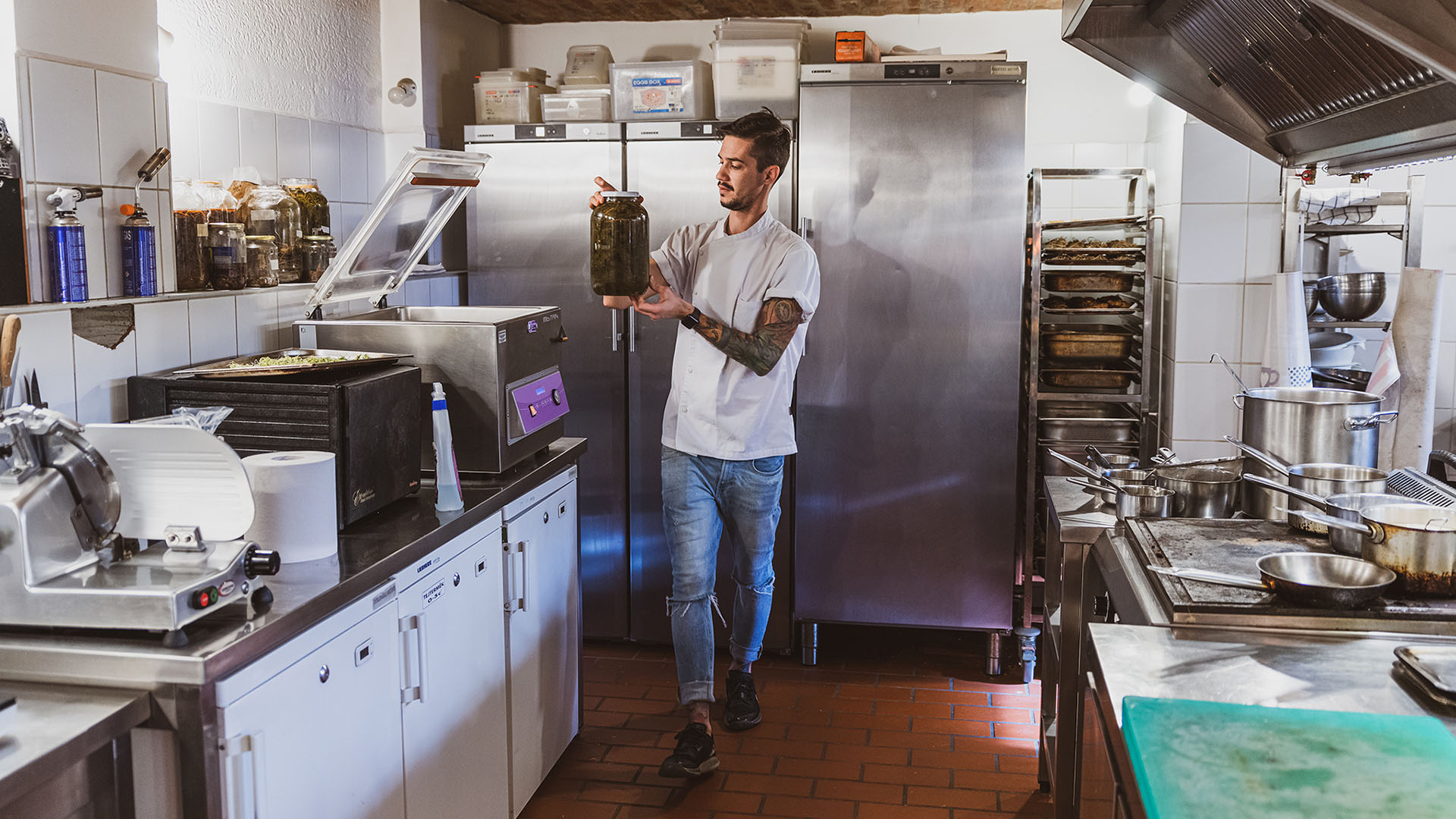 Richárdhoz mindig is közel állt az új északi konyha gondolatisága, a közvetlen környezetünkben lévő alapanyagok felhasználása és tartósítása. Ennek itthon is van hagyománya, annyi különbséggel, hogy dédanyáink ezt nem “nordic”-nak hívták. A csapat egy botanikus segítségével tavasszal rengeteg terményt (terméseket, gyógynövényeket, virágokat) gyűjt be a kertből, a közeli erdőkből, mezőkről, amiket az év folyamán felhasználnak.