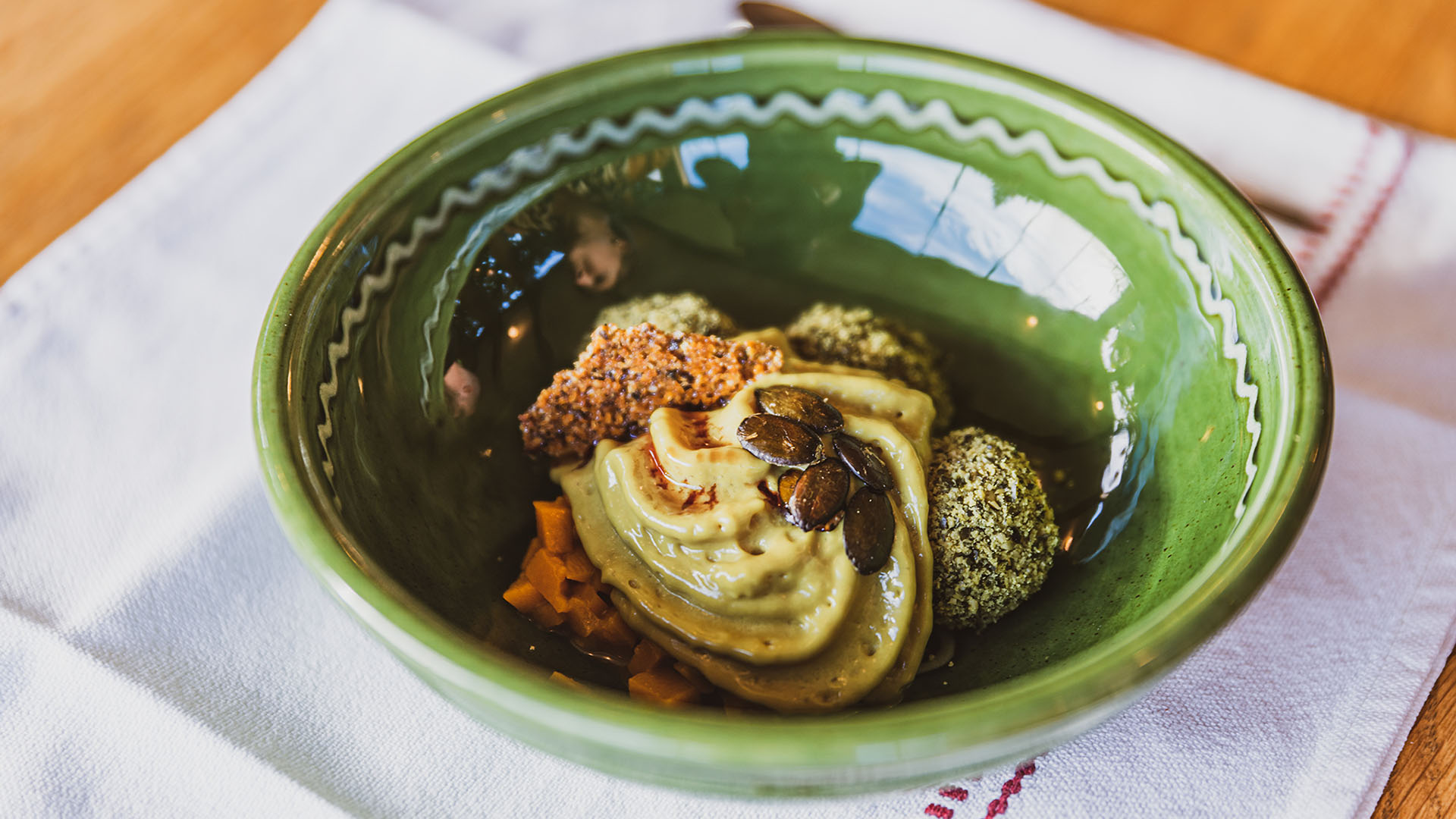 Richárdhoz mindig is közel állt az új északi konyha gondolatisága, az általa vezetett étteremben elsődleges célja ennek a megközelítésnek az átültetése a hazai közegbe. A közvetlen környezetünkben lévő alapanyagok felhasználása és tartósítása itthon mindig is jelen volt, annyi különbséggel, hogy dédanyáink nem “nordic”-nak hívták, amit csináltak. A csapat egy botanikus segítségével tavasszal rengeteg terményt gyűjt be a kertből, a közeli erdőkből, mezőkről. Két hűtőjük is van, amiben kizárólag ezek a termések, gyógynövények, virágok várakoznak a felhasználásra.